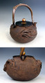 No.hn2721, Rihonbaisen iron kettle(teakettle) replica, design is plum and orchid flowers with inlay silver, Made by Hannya, nearly 1.3L