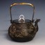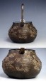 No.tb118, Zouroku iron kettle (teakettle) replica, design is two dragons with jade knob, handle and lid plate silver, Made in Japan, 0.6L